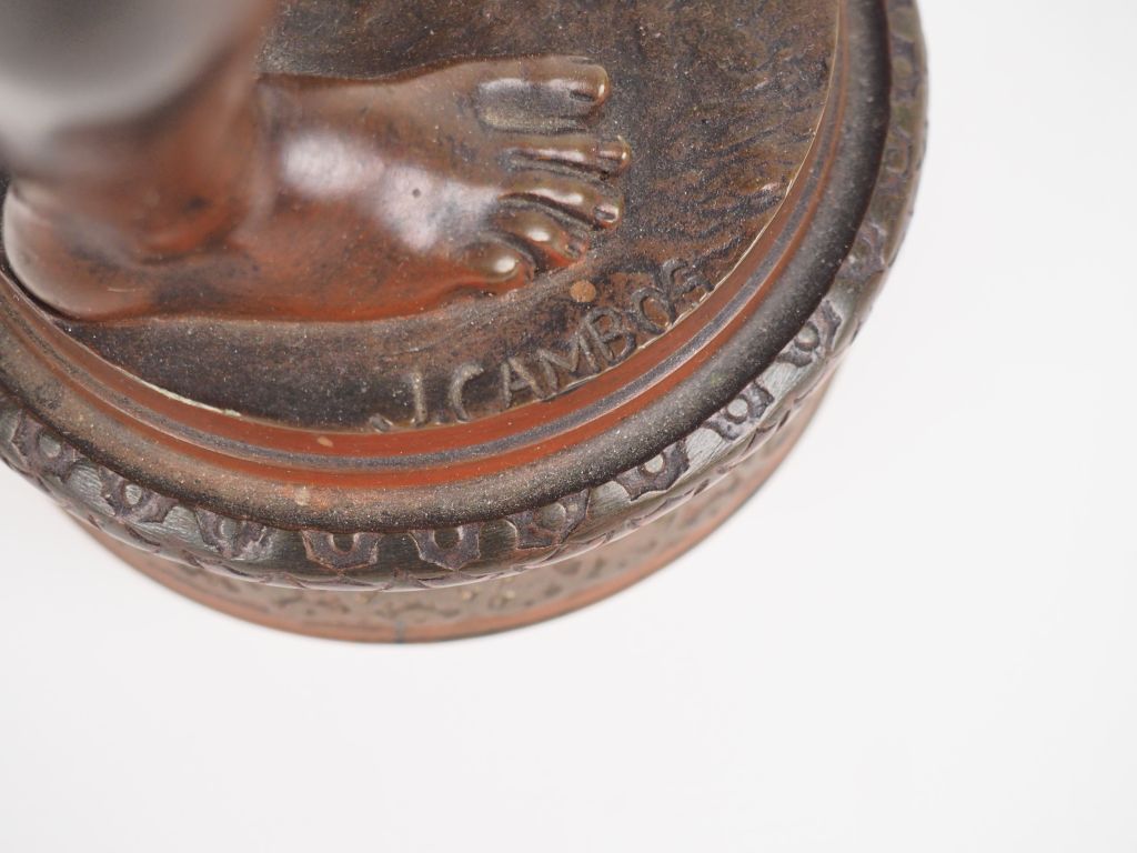 CAMBOS. "David" Sculpture en bronze à patine médaille Signée H. 36 cm
