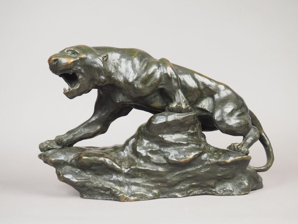 Lot de Ecole française fin XIXème. "Lionne rugissant" Sculpture en bronze à p au prix de 300 à 400 € en vente aux enchères par l'hôtel des ventes Primardeco