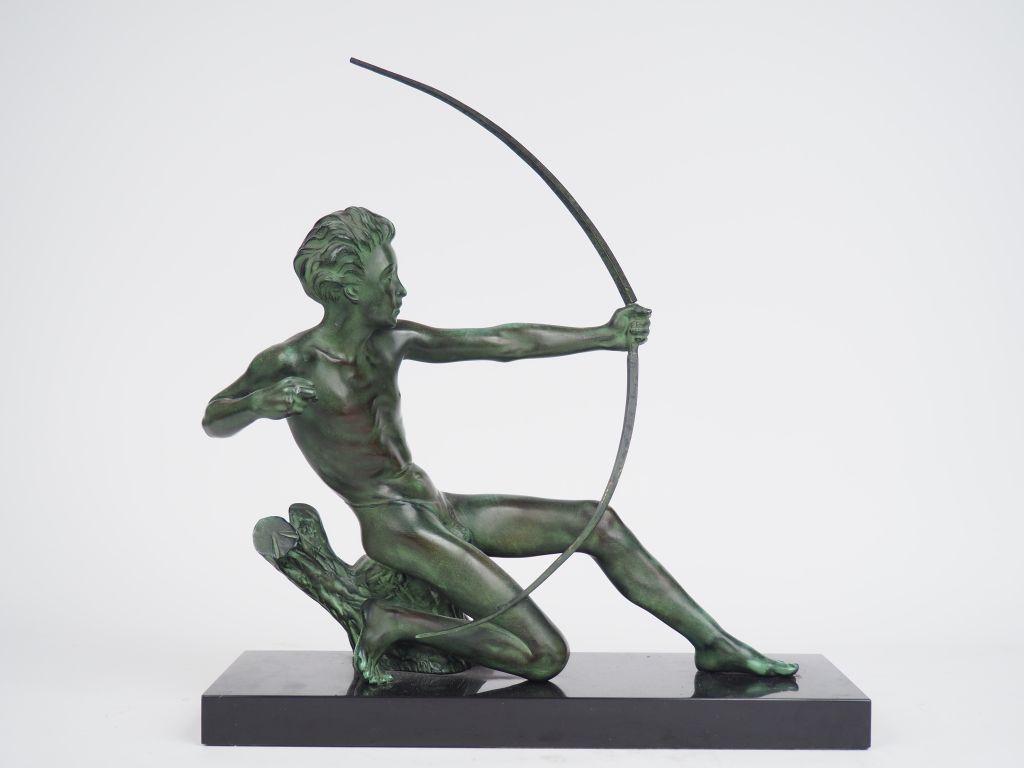 Ecole française XXème "Héraclès" Sculpture en bronze à patine verte. Socle en marbre noir. 35 x 37 cm