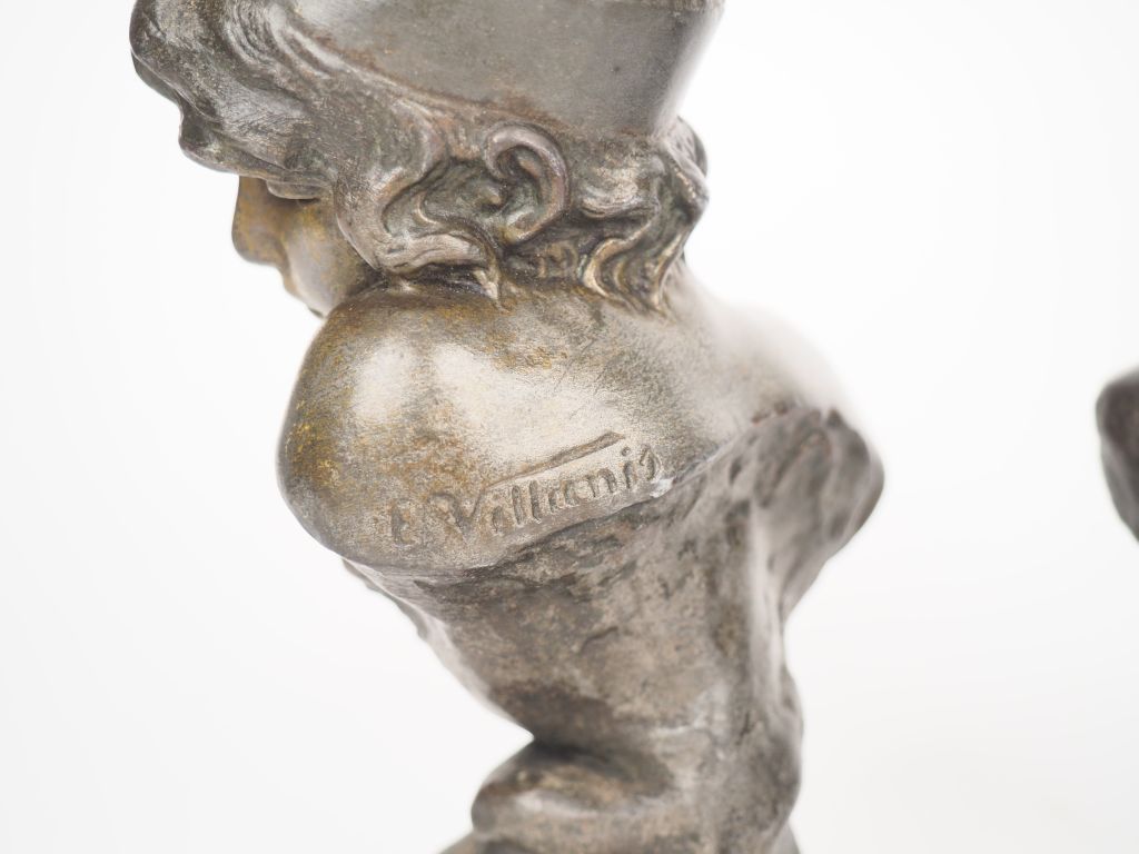 Emmanuel VILLANIS. "Sapho" et "Circé". Paire de sujets en régule argen...