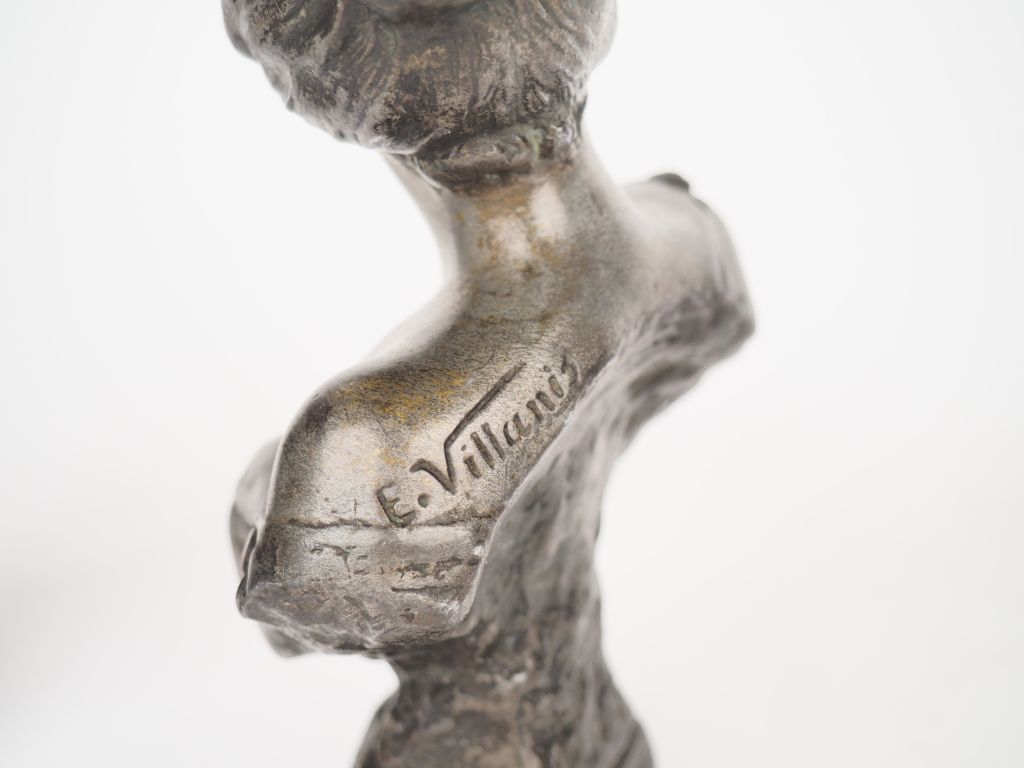 Lot de Emmanuel VILLANIS. "Sapho" et "Circé". Paire de sujets en régule argen au prix de 60 à 80 € en vente aux enchères par l'hôtel des ventes Primardeco