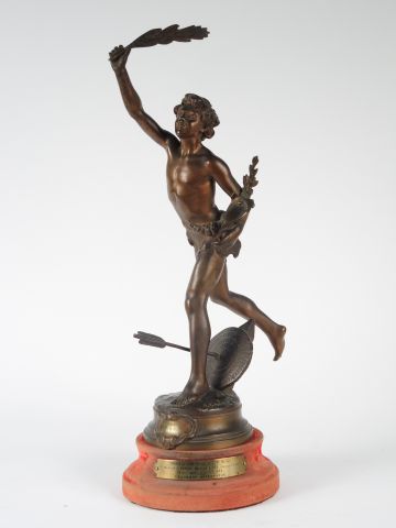 Lot de GAUDEZ. Sujet en bronze à patine médaille « Le vainqueur ». Signé. H. au prix de 350 à 500 € en vente aux enchères par l'hôtel des ventes Primardeco