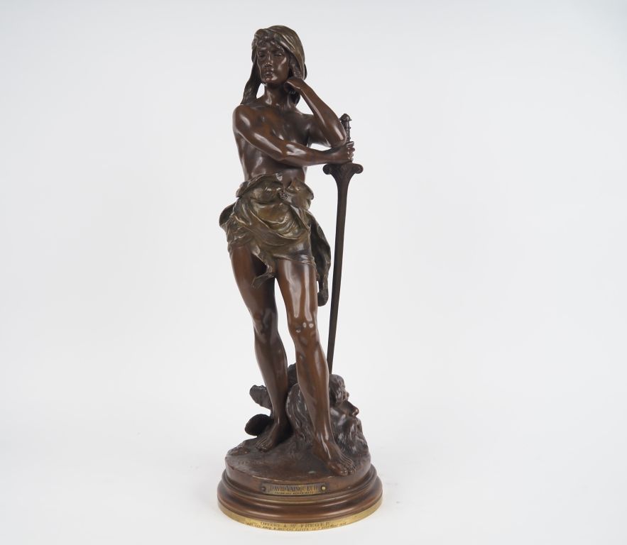 Henri PLE. "David vainqueur" Sculpture en bronze à patine médaille et verte Signée H. 64 cm Société des bronzes de Paris, numérotée 8204