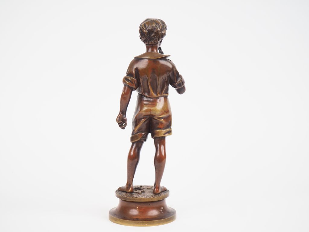 LAVERGNE. "le joueur de fifre au lézard" Sujet en bronze à patine médaille Signé H. 32 cm (petit manque sur la terrasse)