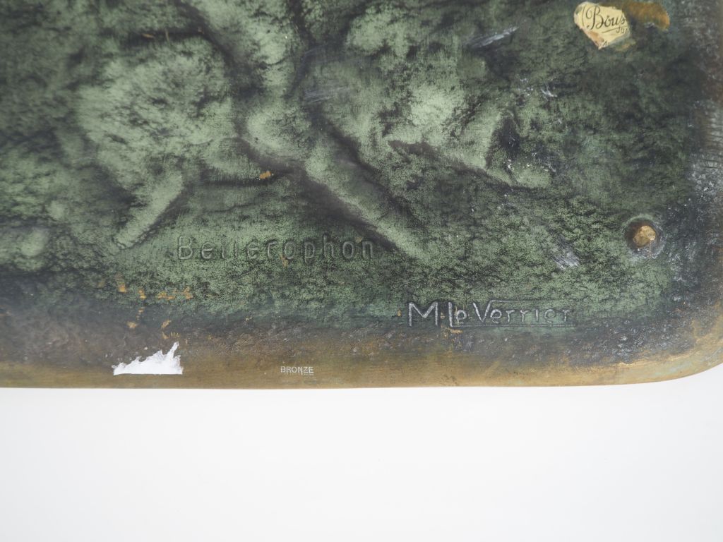 Lot de LE VERRIER. "bellerophon" Plateau en bronze à patine verte et mordoré au prix de 50 à 80 € en vente aux enchères par l'hôtel des ventes Primardeco