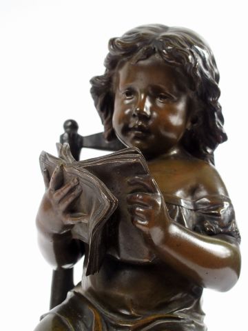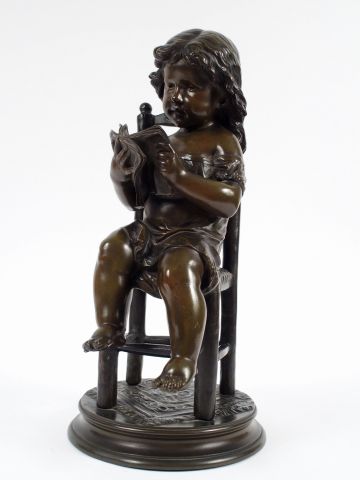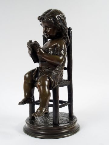Lot de LECORNEY. 'Fillette lisant'. Sculpture en bronze à patine verte, signé au prix de 400 à 600 € en vente aux enchères par l'hôtel des ventes Primardeco