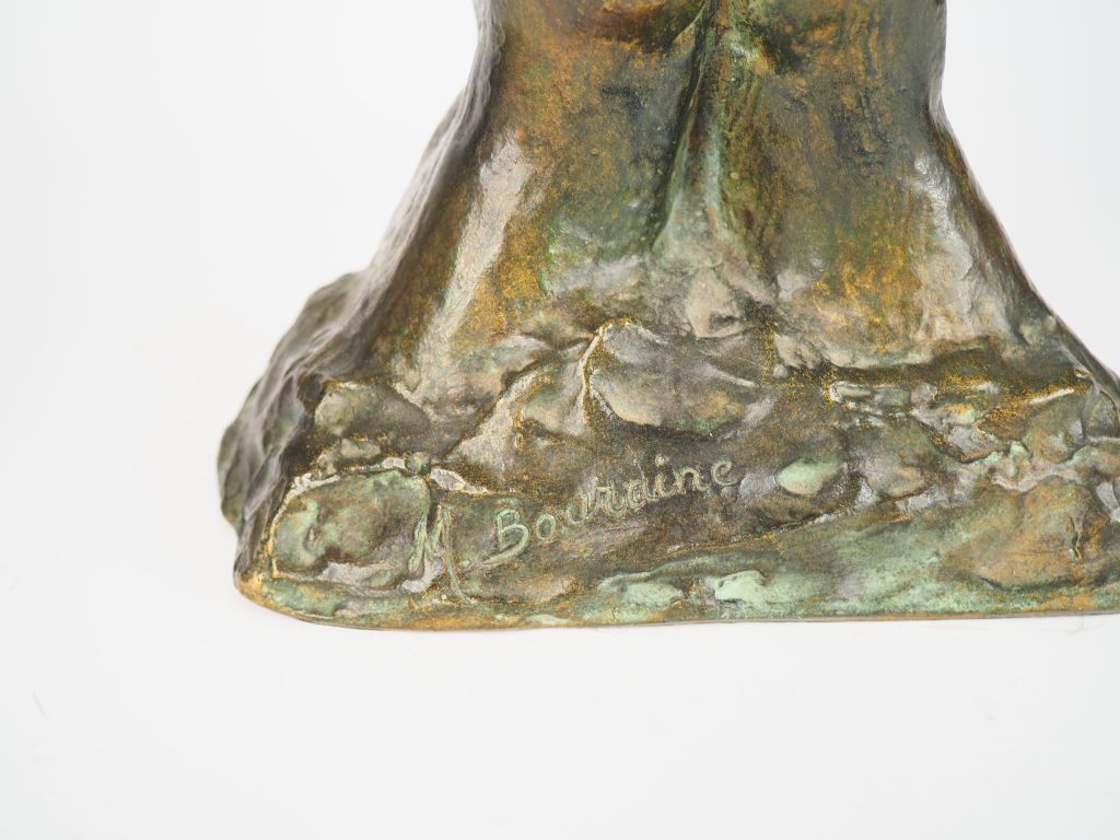 Marcel André BOURAINE. "L'offrande" Sculpture en bronze à patine verte Signée. H. 51