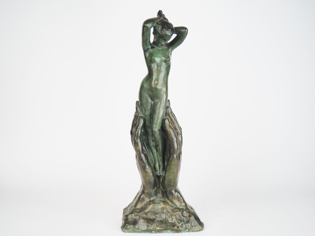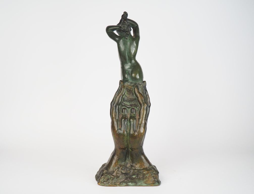 Lot de Marcel André BOURAINE. "L'offrande" Sculpture en bronze à patine vert au prix de 500 à 800 € en vente aux enchères par l'hôtel des ventes Primardeco