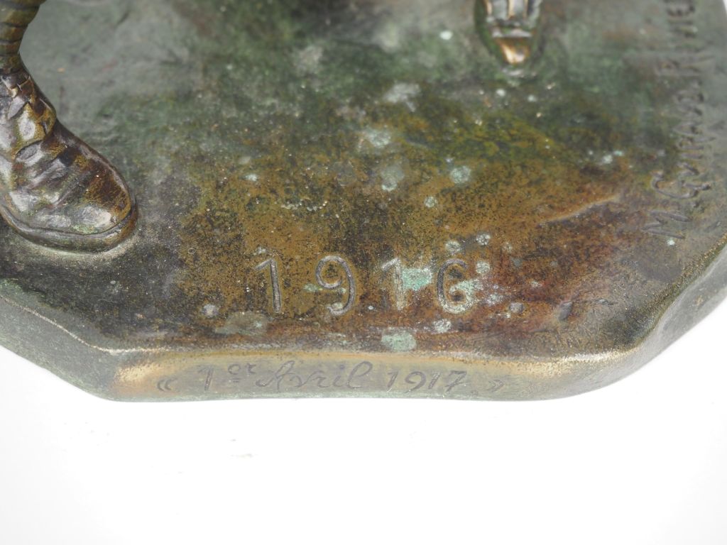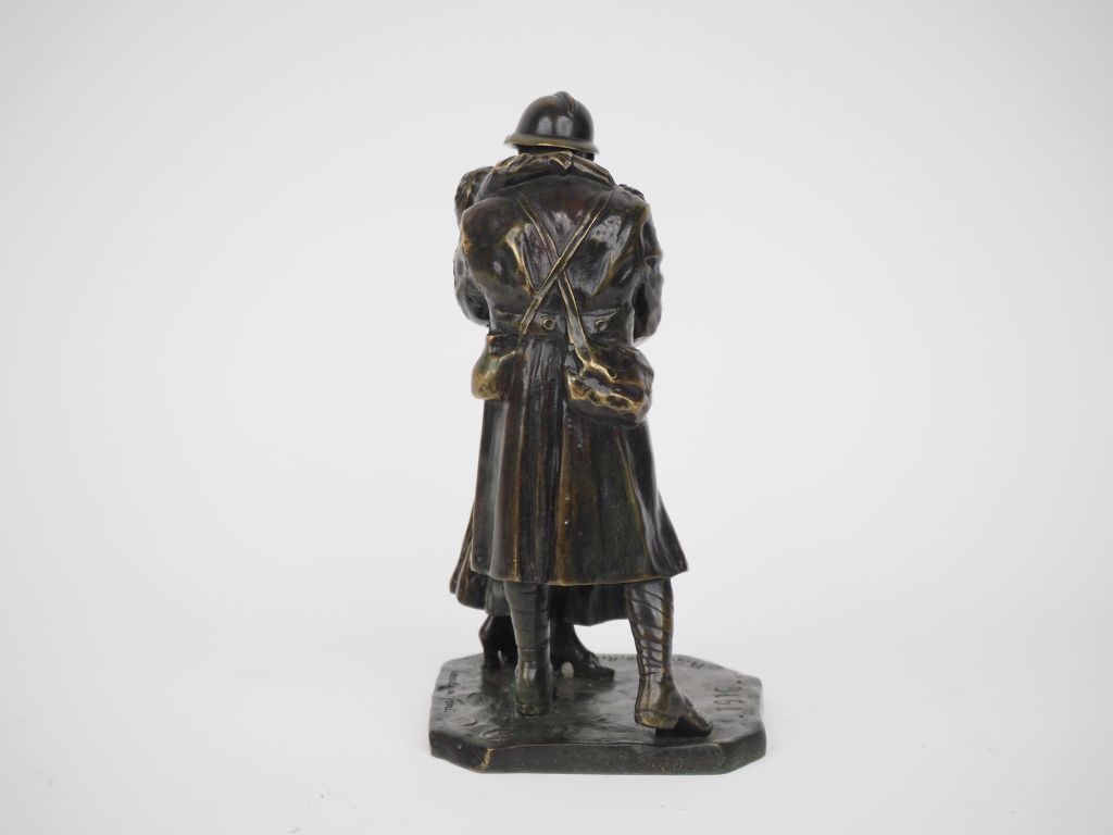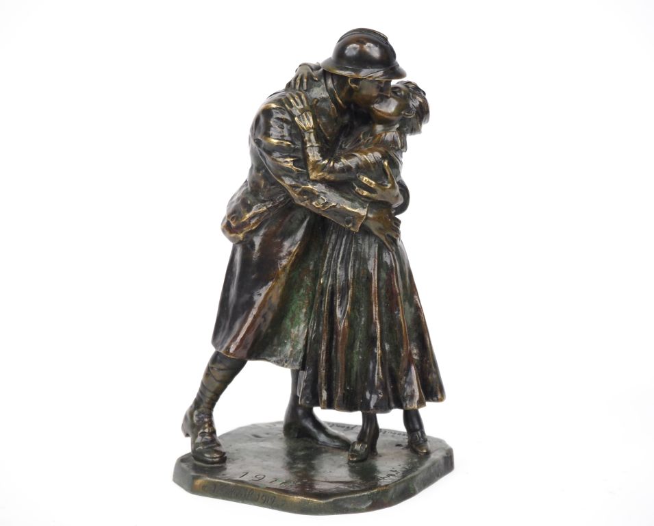 Maurice GUIRAUD-RIVIERE. "Le baiser du poilu,le 1er avril 1917" Sculpture en bronze à patine brune Signée H. 22,5 cm