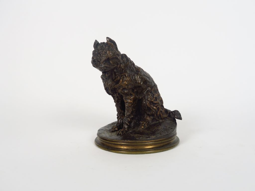 Lot de P.J. MENE. "Griffon assis". Sculpture en bronze à patine médaille. Si au prix de 350 à 500 € en vente aux enchères par l'hôtel des ventes Primardeco