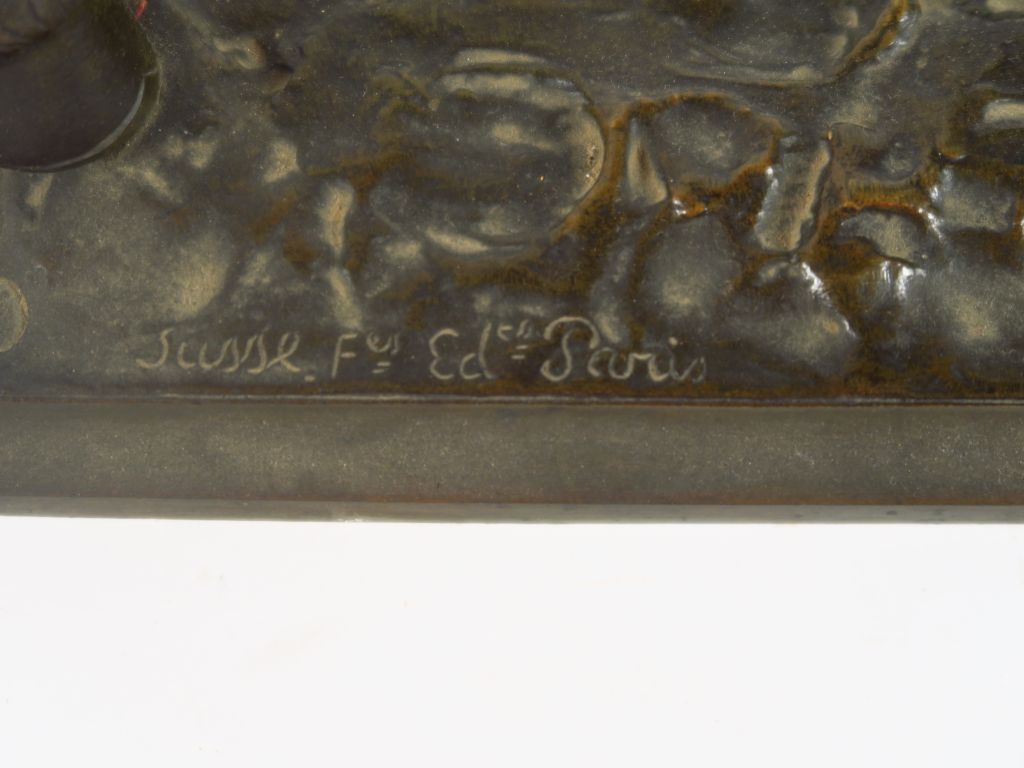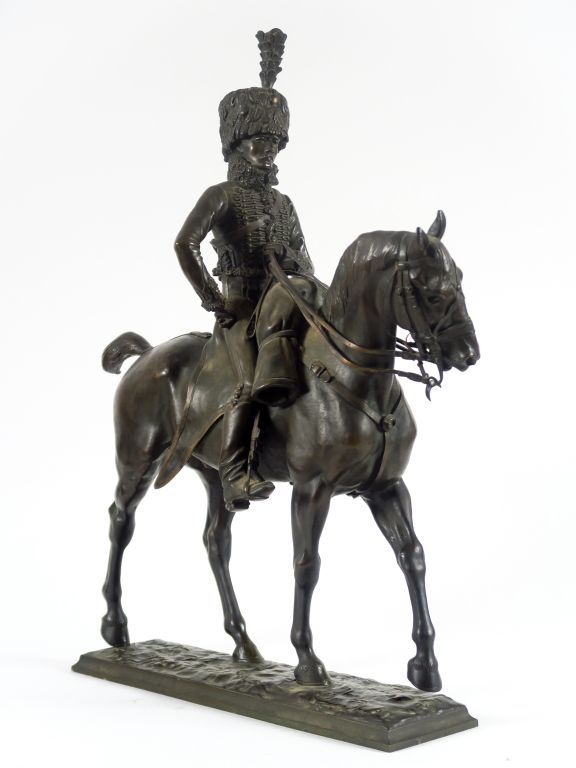 P. TOURGUENEEF. " Le hussard" Sculpture en bronze à patine brune. Signée. Susse Frères, éditeurs Paris. H. 61,5 cm Long. 48 cm