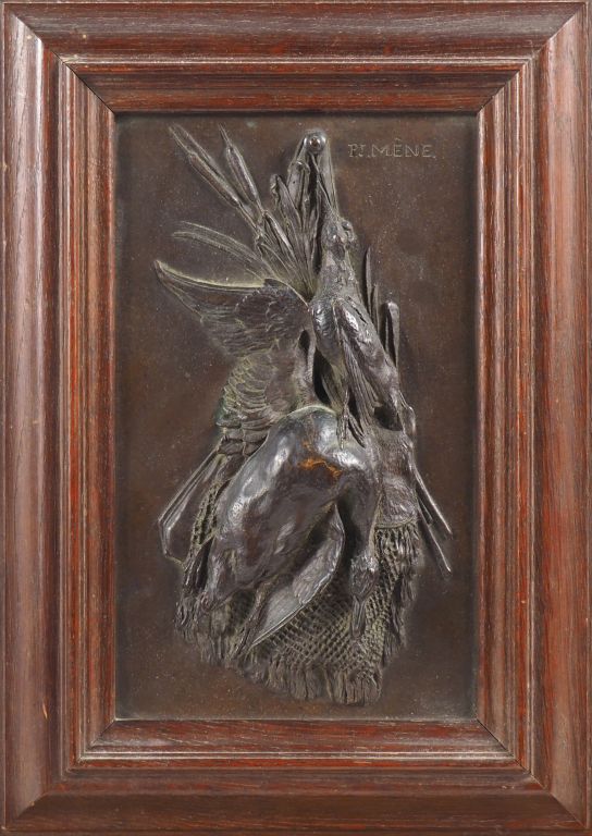 Lot de Pierre Jules MENE. Plaque en bronze à patine brune "trophée de chasse" au prix de 100 à 200 € en vente aux enchères par l'hôtel des ventes Primardeco