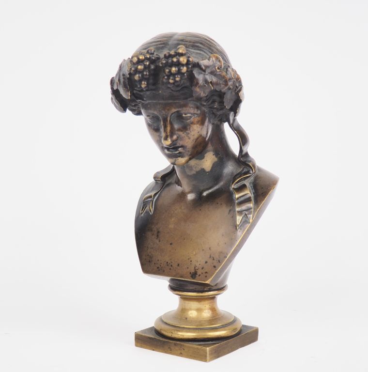 Lot de Sujet en bronze XIXème "buste de déesse". H. 23 cm. (Dépatiné par endr au prix de 100 à 150 € en vente aux enchères par l'hôtel des ventes Primardeco