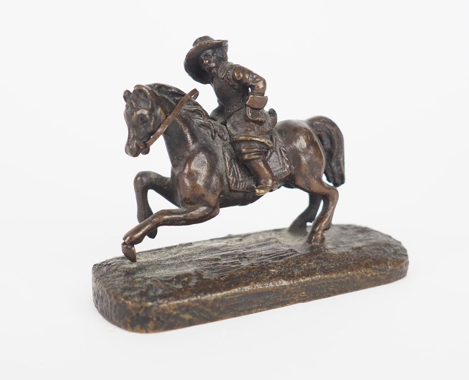 Lot de Sujet XIXème en bronze à patine brune "cavalier". Dim. 5,5 x 6,5 x 2,5 au prix de 50 à 60 € en vente aux enchères par l'hôtel des ventes Primardeco