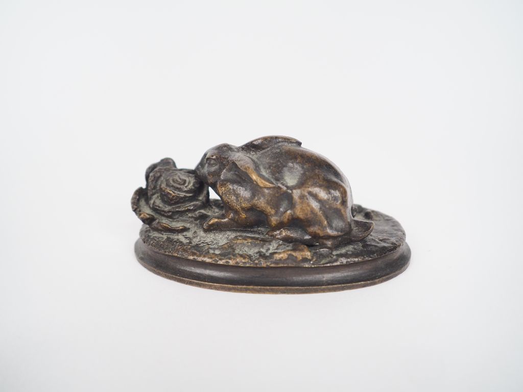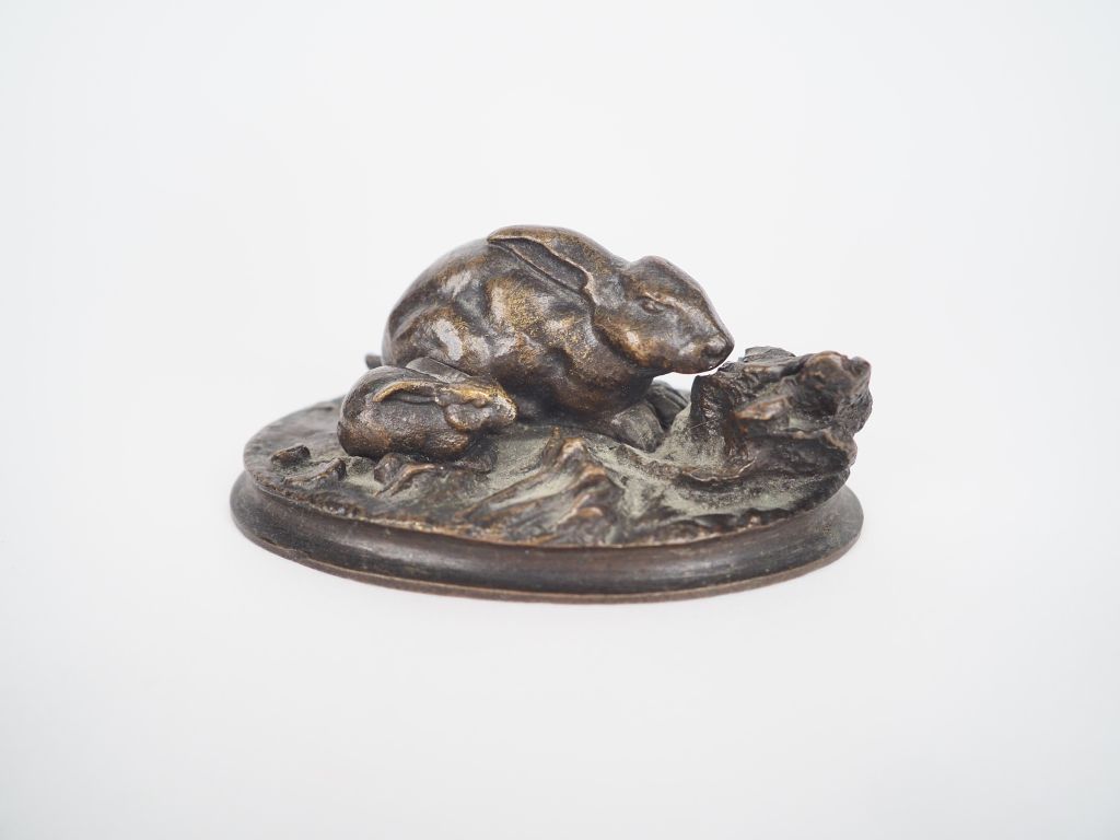 Lot de Sujet XIXème en bronze à patine brune "lapine et son lapereau". Dim. 4 au prix de 50 à 80 € en vente aux enchères par l'hôtel des ventes Primardeco