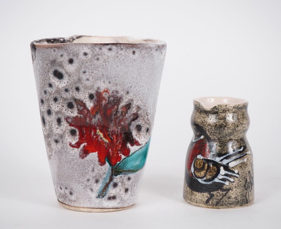 GEBEL. Petit pichet Signé H. 9,5 cm et un vase en céramique polychrome des années 60 H. 15 cm