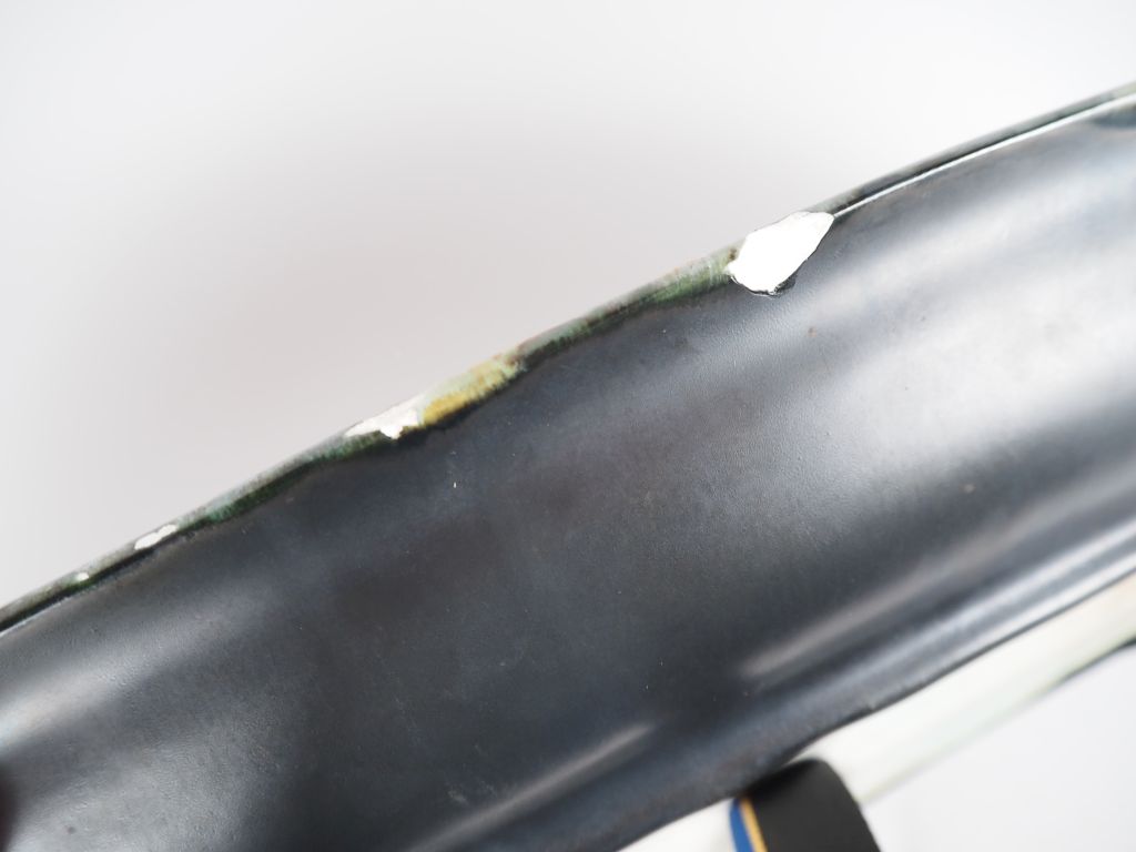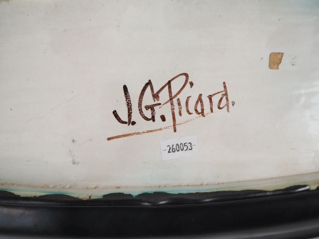 J. G. PICARD. Plat ovale en céramique flammée polychrome. (égrenures au revers). Dim. 25 x 59,5 cm