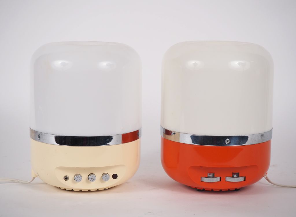 Lot de Adriano RAMPOLDI pour Europhon. Deux "Radio Lampada" années 60. Signée au prix de 50 à 80 € en vente aux enchères par l'hôtel des ventes Primardeco
