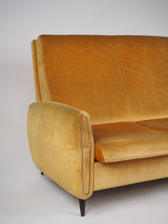 Canapé deux places années 50, garniture de velours jaune. (état d'usag...