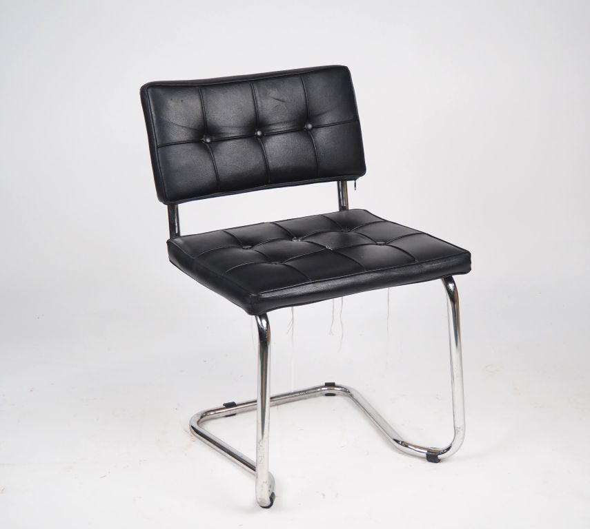 Lot de Chaise de bureau design en skaï noir et piétement en métal chromé. au prix de 50 à 80 € en vente aux enchères par l'hôtel des ventes Primardeco