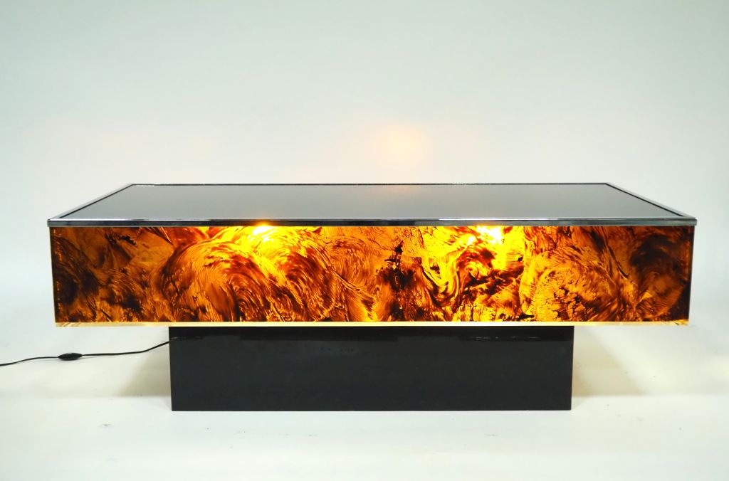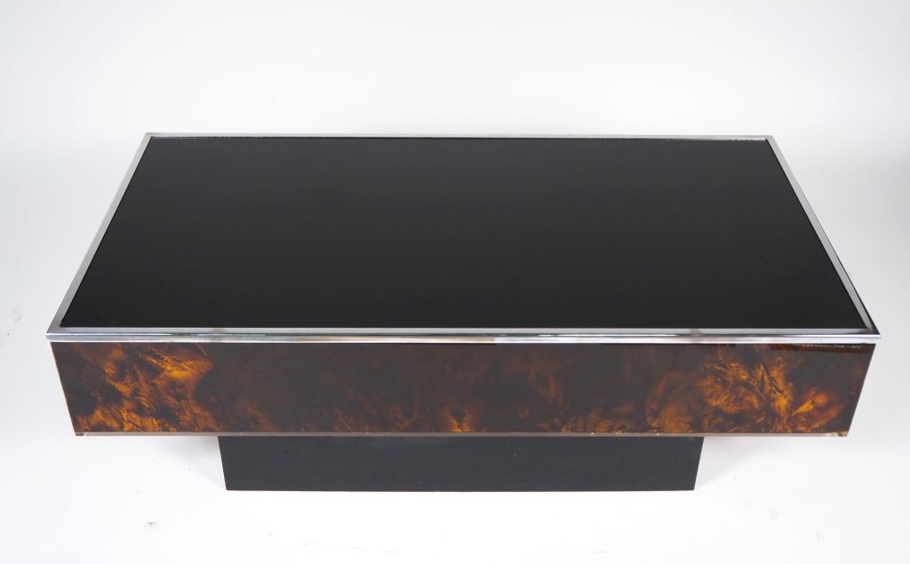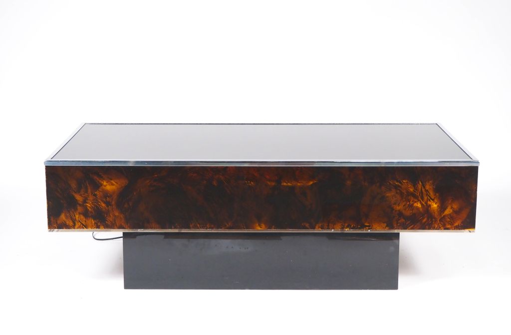 JC MAHEY pour Maison ROMEO. Table basse éclairante années 70 façon écaille de tortue. Dim. 40 x 60 x 120 cm.
