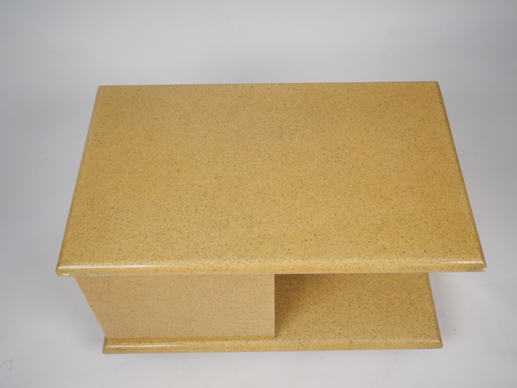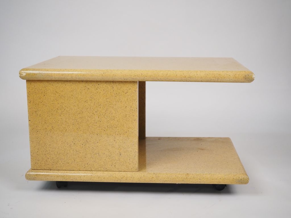 Jean Claude MAHEY. Desserte roulante et sa lampe en composition à l'imitation du marbre. Signées Dim. 46 x 80 x 50 cm