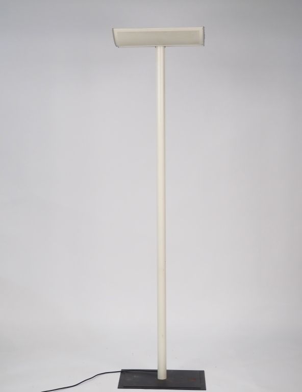 LUXO. Lampadaire en métal laqué blanc et noir, éclairant à quatre lumières halogènes. H. 193 cm