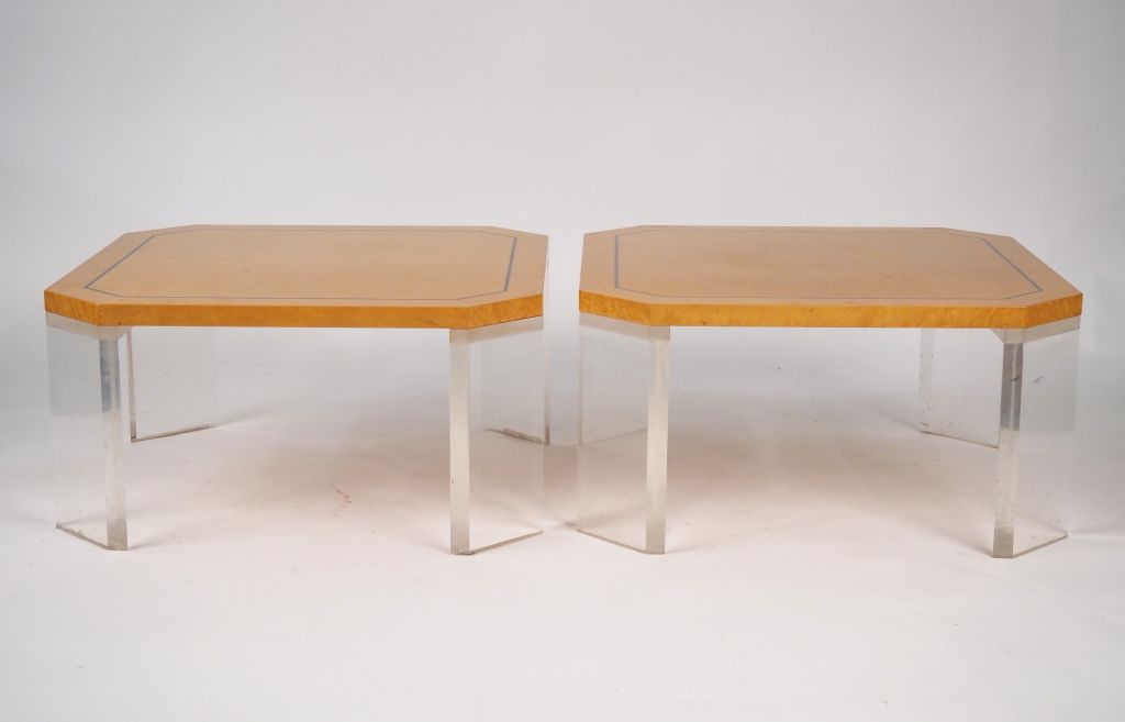 Marc MICAUD. Paire de tables basses octogonales en composition, à quatre pieds en plexiglass. Signées Dim. 35 x 70 x 70 cm