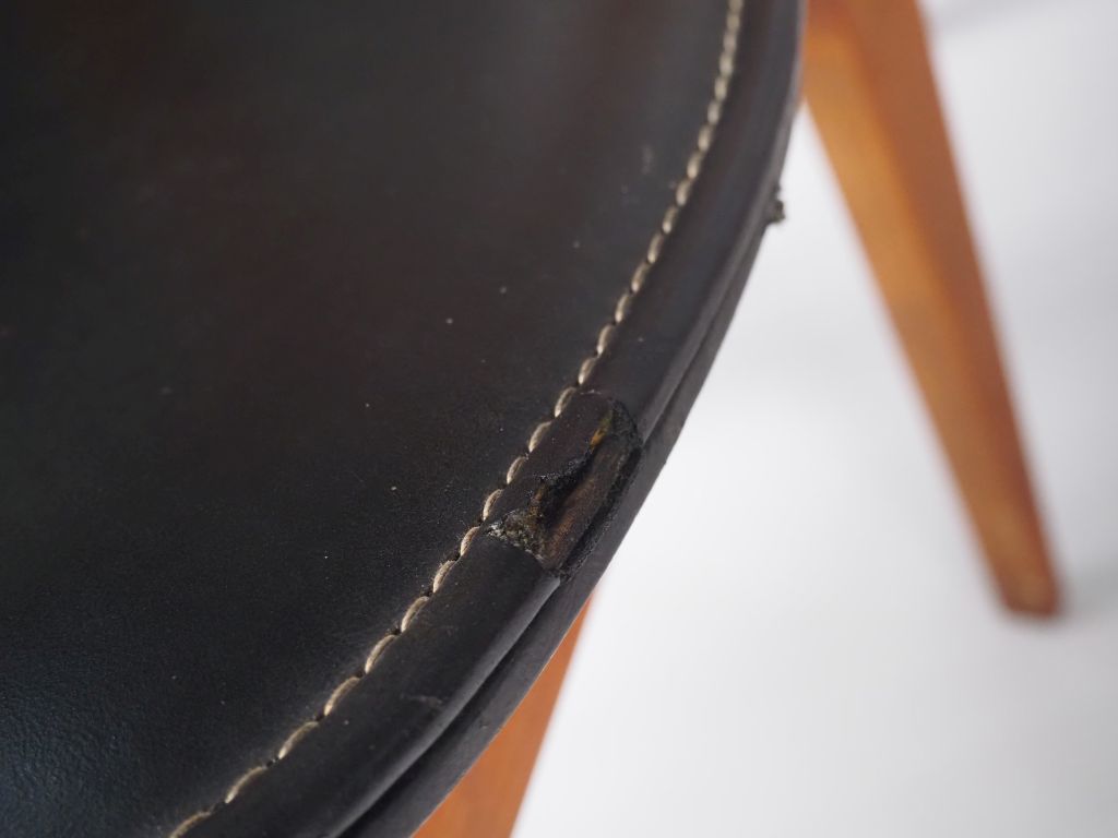 Lot de Roger LANDAULT. Suite 6 chaises 1950 en bois et cuir noir. au prix de 600 à 800 € en vente aux enchères par l'hôtel des ventes Primardeco