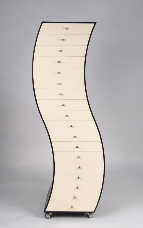 Shiro KURAMATA pour CAPPELLINI. Meuble "PC/3 - Side 1" blanc et noir. Avec son certificat d'authenticité en date du 25.02.1992. Dim. 172 x 45 x 50 cm. (micro choc)