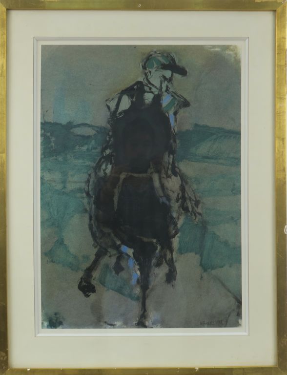 DEFOSSEZ. "Le Jockey". Aquarelle, signée en bas à droite et datée 1965. Dim. 54 x 37,5 cm.