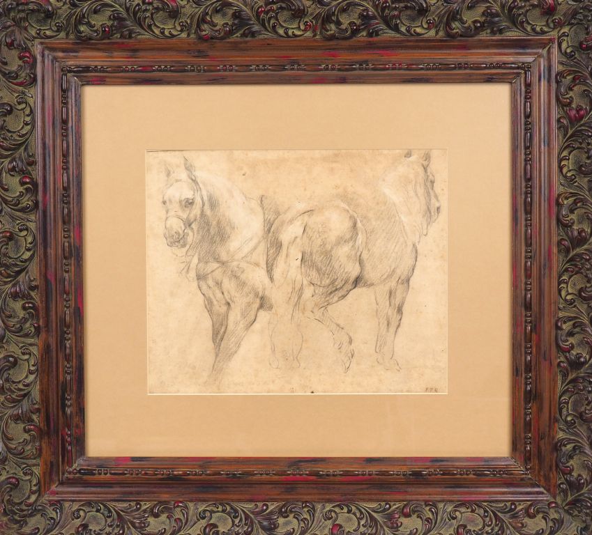 Lot de Ecole du Nord XIXème monogrammée PPR. "Etude de chevaux" Dessin au cra au prix de 200 à 300 € en vente aux enchères par l'hôtel des ventes Primardeco