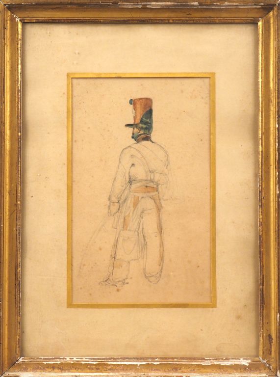 Ecole française XIXème. "Portrait de soldat". Dessin aquarellé. Dim. (...
