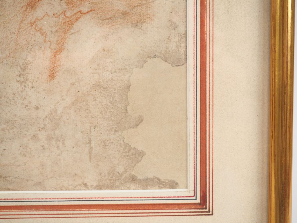 Ecole italienne fin XVIIIème début XIXème. "Etude de jeune femme nue" Dessin à la sanguine (papier déchiré en bas à droite) Dim. 42 x 28 cm
