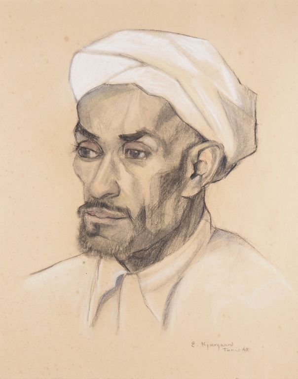 KJÆRGAARD "portrait d'homme" Dessin, signé en bas à droite, situé à Tunis et daté 48 Dim. 53,5 x 43 cm (rousseurs)