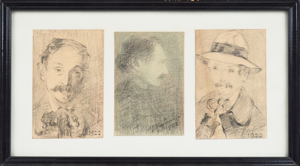 M. LAFAURIE. "Portraits d'homme". 3 dessins au crayon dans un même encadrement signés et datés 1922. Dim. (pour chaque) : 18 x 11,5 cm.