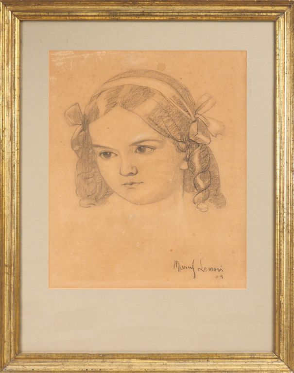 Marcel LENOIR. "Portrait de jeune fille". Dessin signé et daté en bas à droite. Dim. (à vue) : 46,5 x 38 cm.