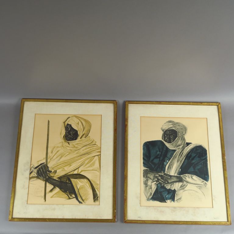 A. IACOVLEFF. "Portraits de Sultans". Paire de lithographies en couleurs. Dim. : 36,5 x 27 cm.