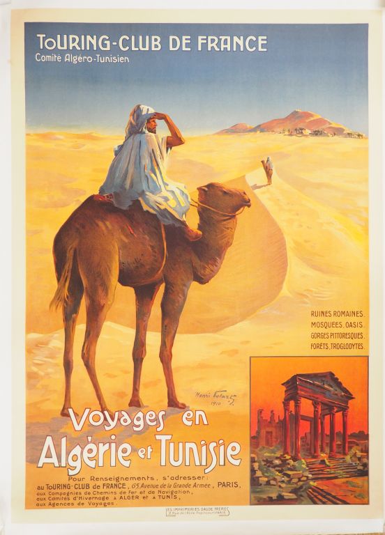 Affiche entoilée du Touring club de France "Voyage en Tunisie et Algérie" (bon état)