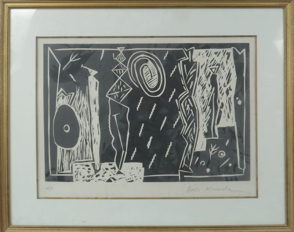 Aki KURODA. "Composition". Lithographie, contresignée en bas à droite et numérotée 17/25. Dim. (à vue) : 44 x 60,5 cm.