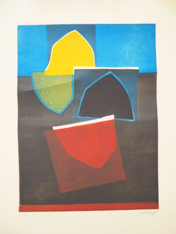 Bertrand DORNY. "Composition géométrique". Sérigraphie, contresignée en bas à droite et numérotée 14/50. Dim. 65 x 50 cm.