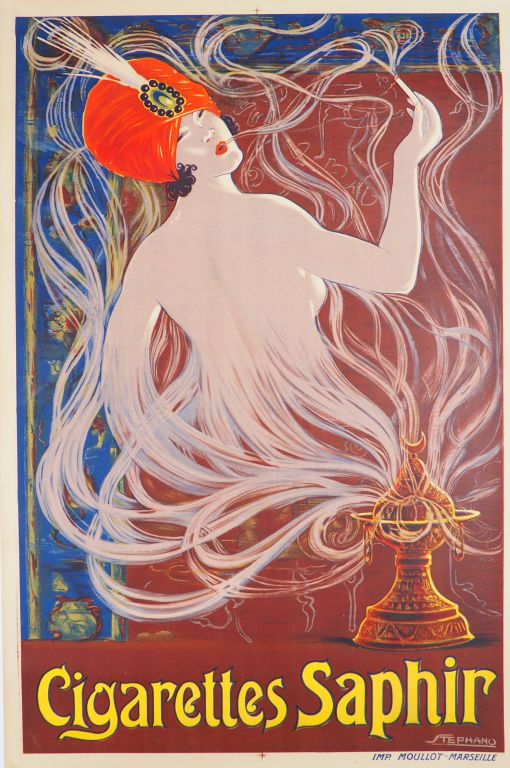 CIGARETTES SAPHIR. Affiche par Stephano, imprimerie Moullot, circa 1930. Concition : A Entoilée. Dim. : 120x80 cm.