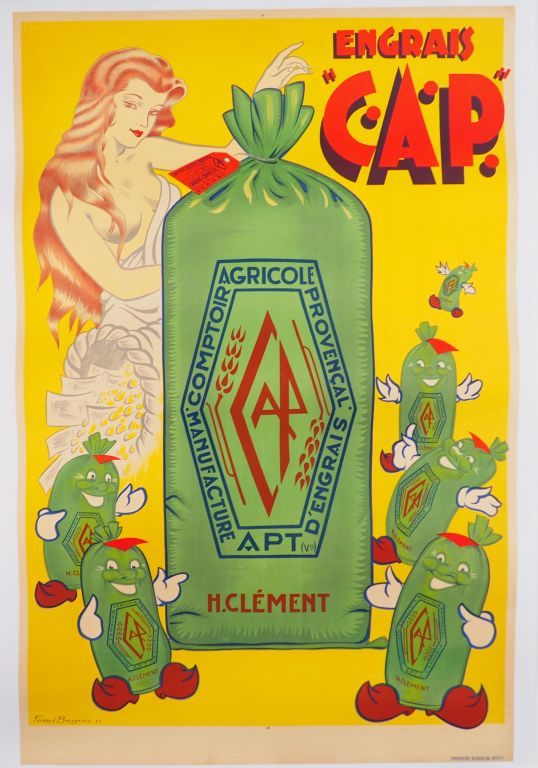 ENGRAIS C.A.P. Affiche par Fernand Bourgeois, imprimerie Reboulin Apt, 1955. Condition : A+ Entoilée. Dim. : 120x80 cm.