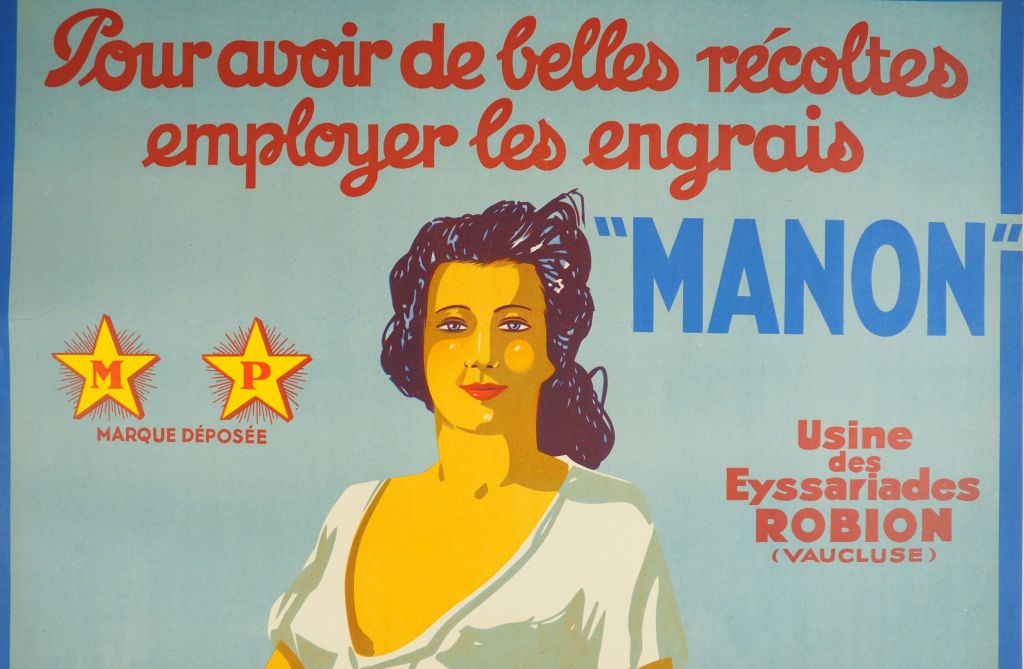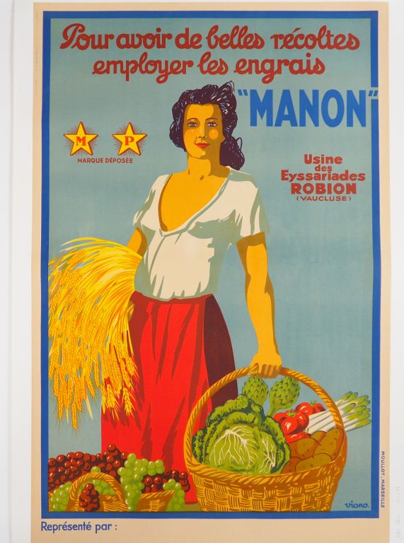 ENGRAIS MANON. Affiche par Viano, imprimerie Moullot, circa 1930. Condition : A Entoilée. Dim. : 120x 80 cm.