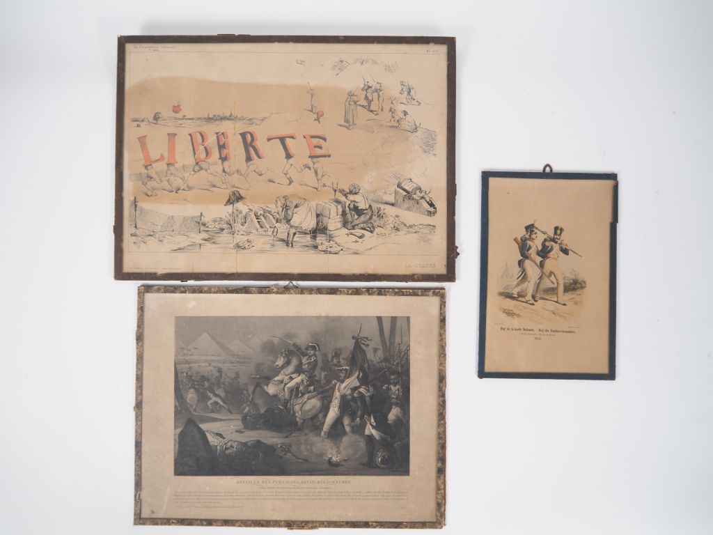 Ensemble de 7 gravures sur l’Empire comprenant des caricatures, des scènes de bataille… (accidents)