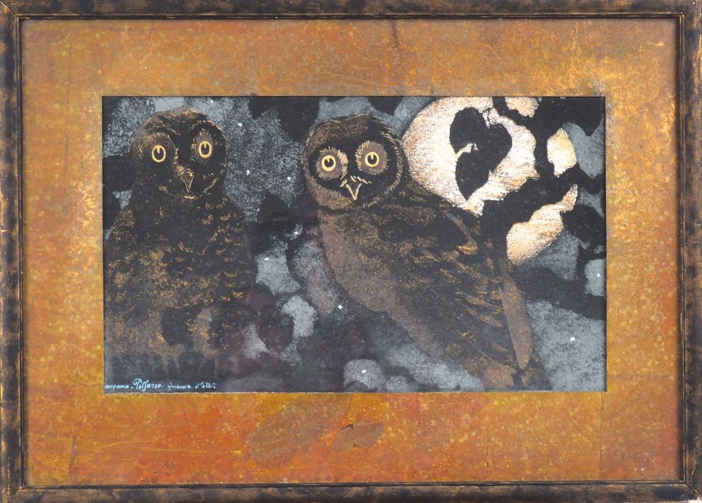 Georges MANZANA-PISSARRO. "Hiboux au clair de lune". Epreuve d'état signée en bas à gauche. Dim. (à vue) : 24,5 x 41 cm.