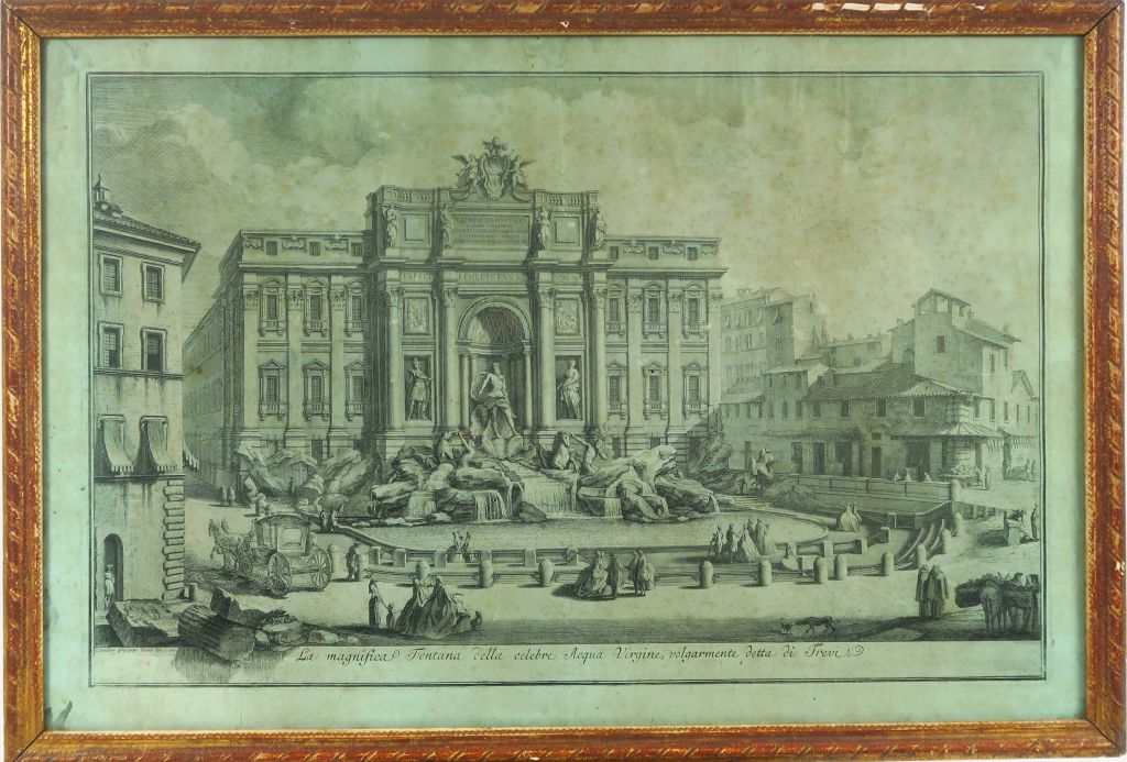 Gravure XVIIème italienne d’après Giuseppe Vasi "La fontaine de Trévise". Dim. 49 x 74 cm