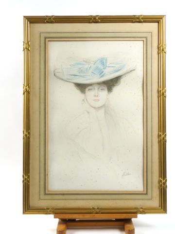 HELLEU "Elégante au chapeaul" Lithographie en couleur signée en bas à droite. Dim. 57 x 36 cm