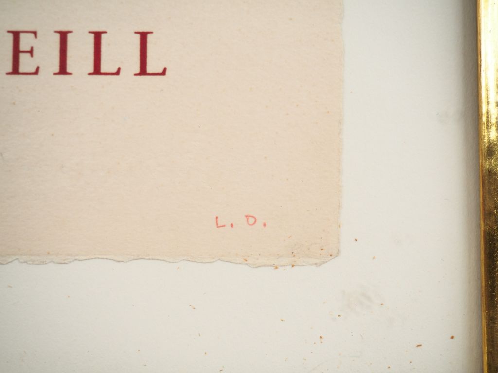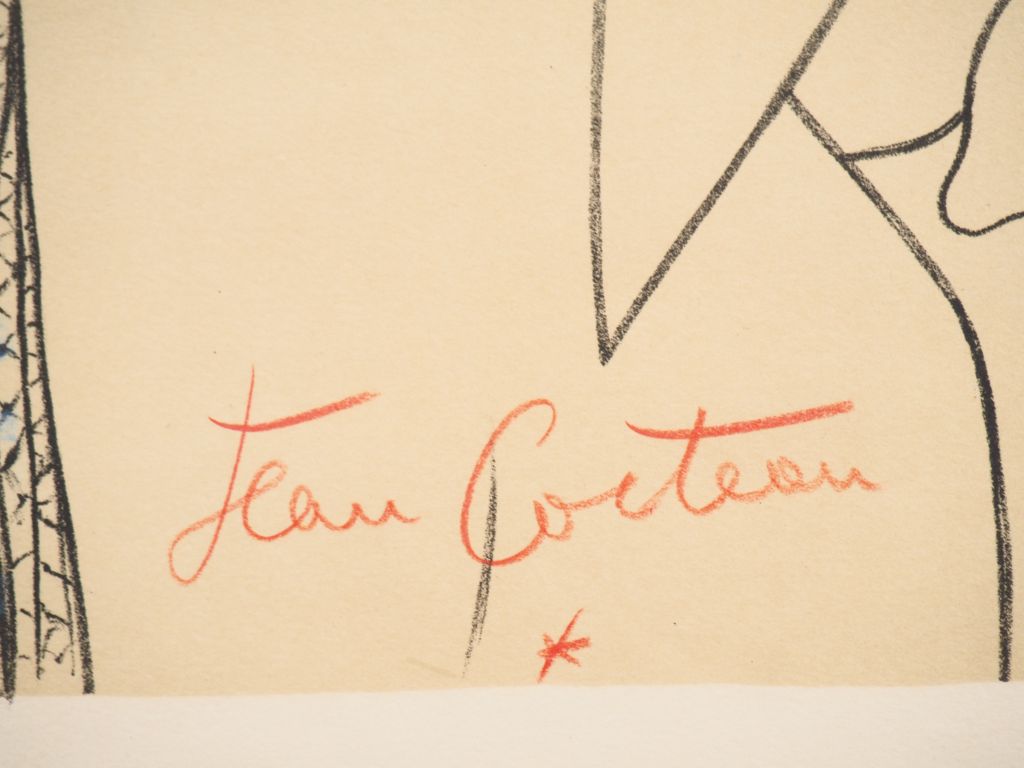 Jean COCTEAU. Affiche lithographique de l'exposition Jean Cocteau Galerie Lucie WEILL "au pont des Arts" Imprimée chez Mourleau en 1957 Monogrammée LD en bas à droite Dim. 66 x 47,5 cm
