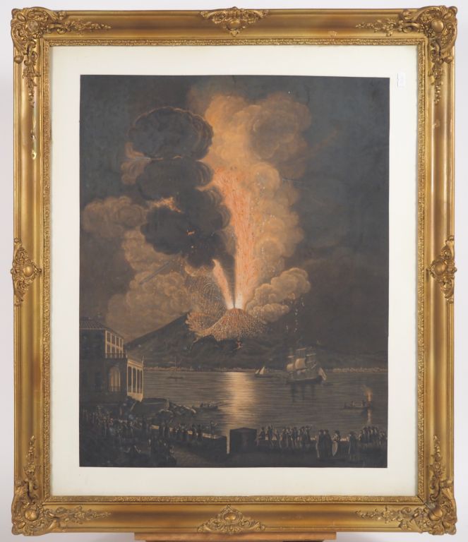 Lithographie d'après une école italienne. "l'éruption du Vésuve" Aquarelle Dim. 62 x 49 cm